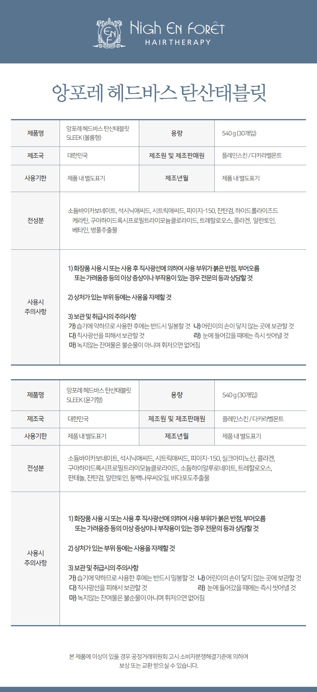 헤드바스 탄산 태블릿 [ 볼륨 타입, 윤기 타입 ] - 30개입